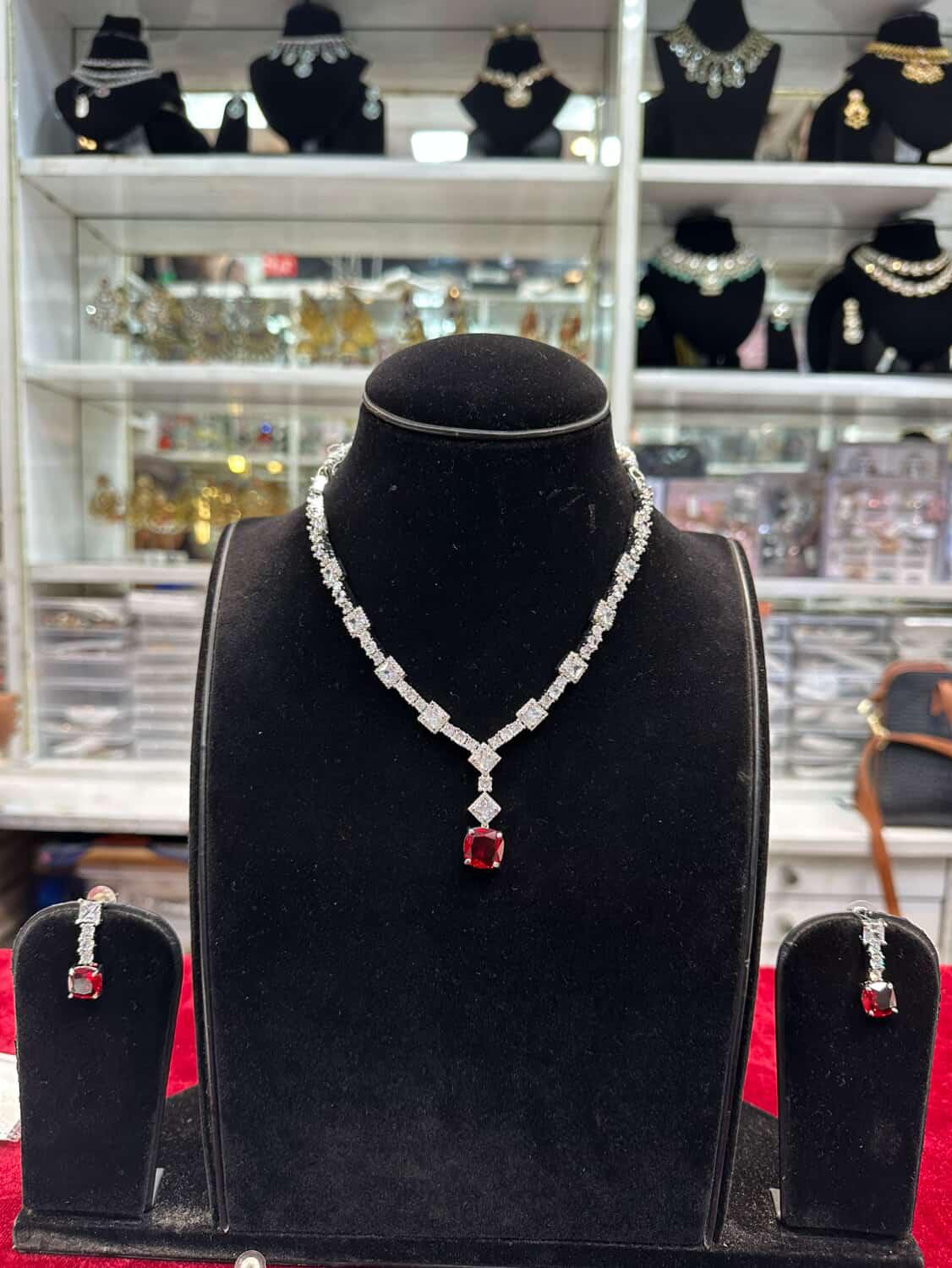 Real Look Silver Diamond Red Ruby Set